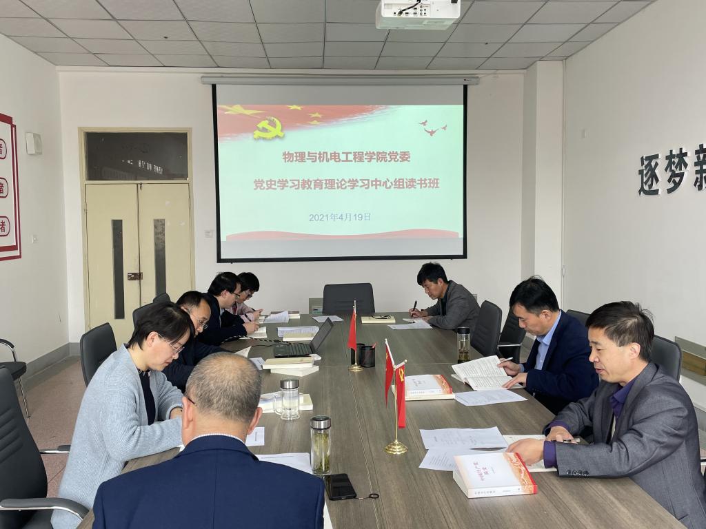 4月19日下午,物理与机电工程学院理论学习中心组召开党史学习教育第二次专题学习会。学习会由学院党委负责人主持,学院党委理论学习中心组成员参加了学习会。