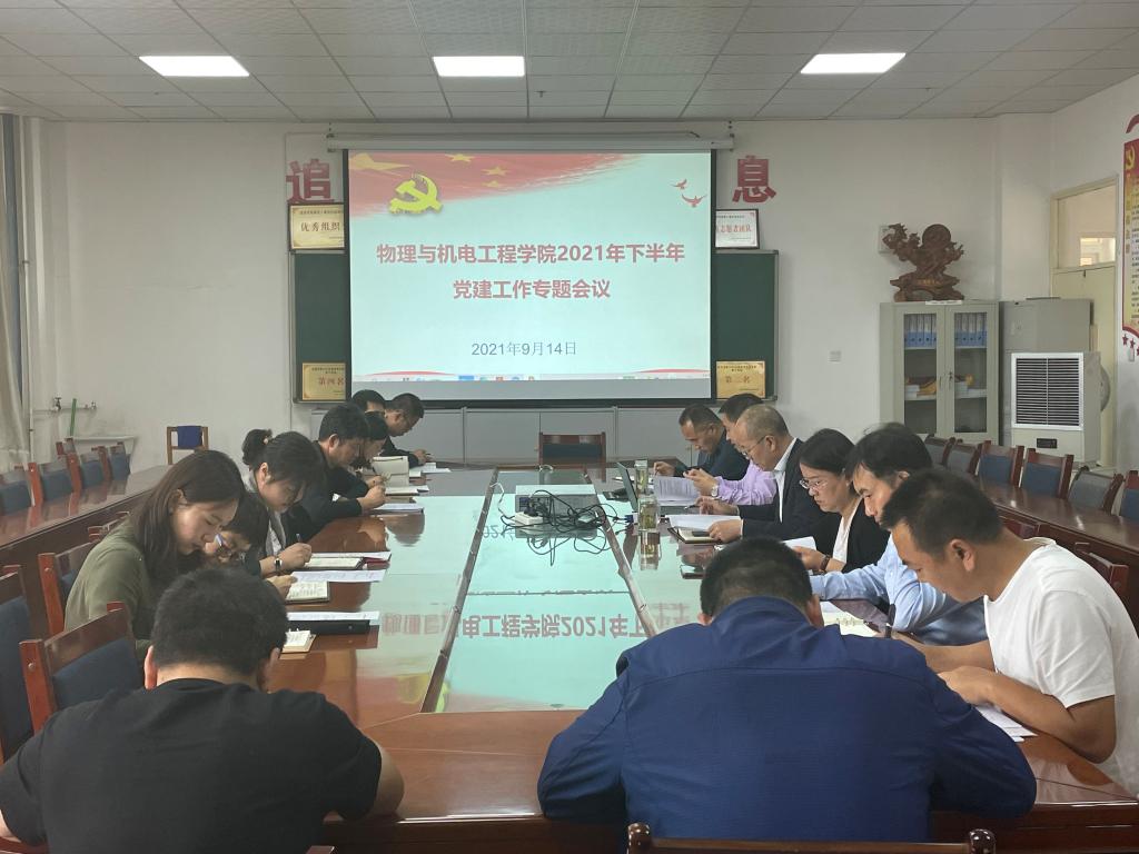 9月14日下午,yl6809永利集团党委召开了2021年下半年学院党建工作专题扩大会议,研究分析学院党建工作的开展情况,部署安排当前和下一阶段党建重点工作任务。会议由学院党委负责人主持,学院党委委员、各支部书记、教工支部组织委员、教研室主任参加了会议。