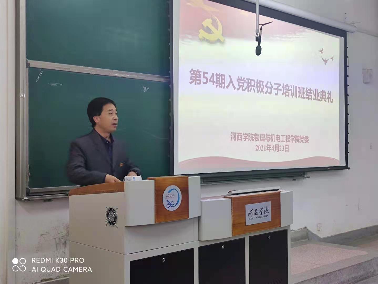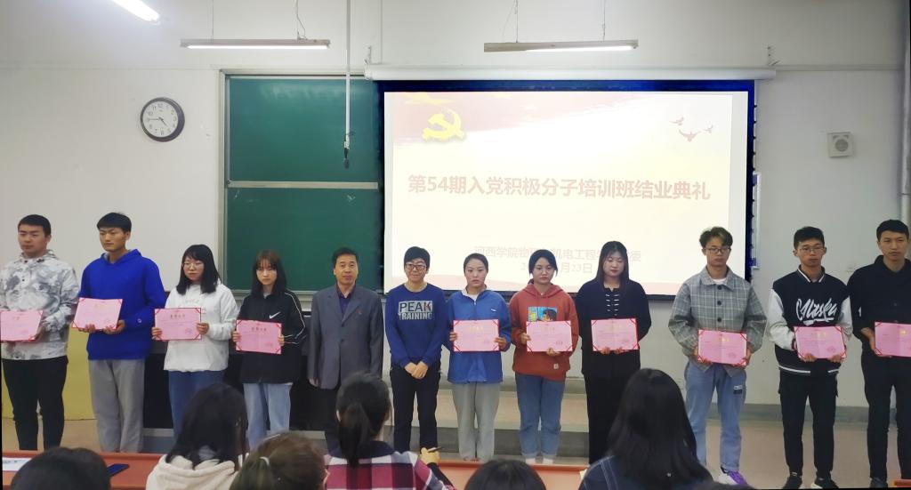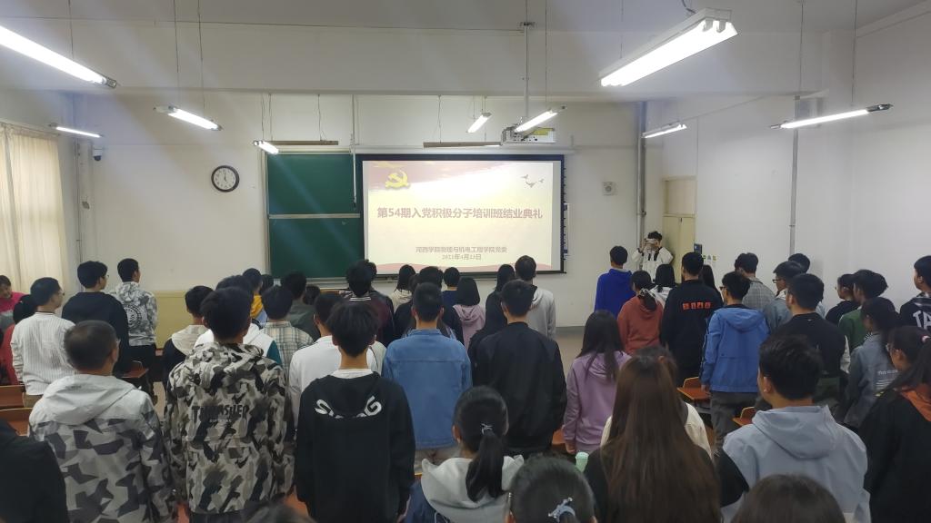 yl6809永利集团第五十四期入党积极分子培训班结业仪式于4月23日下午举行。学院党委书记、培训班班主任、学生支部书记、全体辅导员老师和全体培训学员共100余人参加了结业仪式。