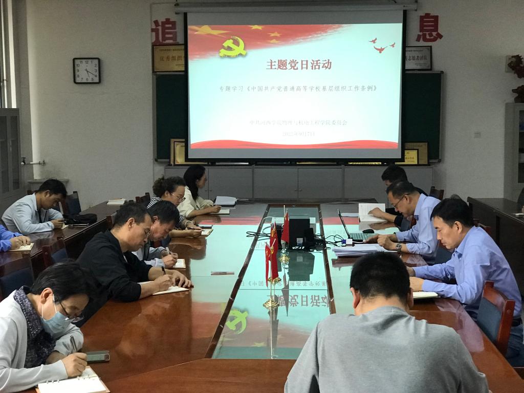 9月7日下午,yl6809永利集团举行主题党日活动,专题学习《中国共产党普通高等学校基层组织工作条例》(以下简称《条例》),学习会议由学院党委负责人主持,学院领导班子、全体教职工党员参加了学习。