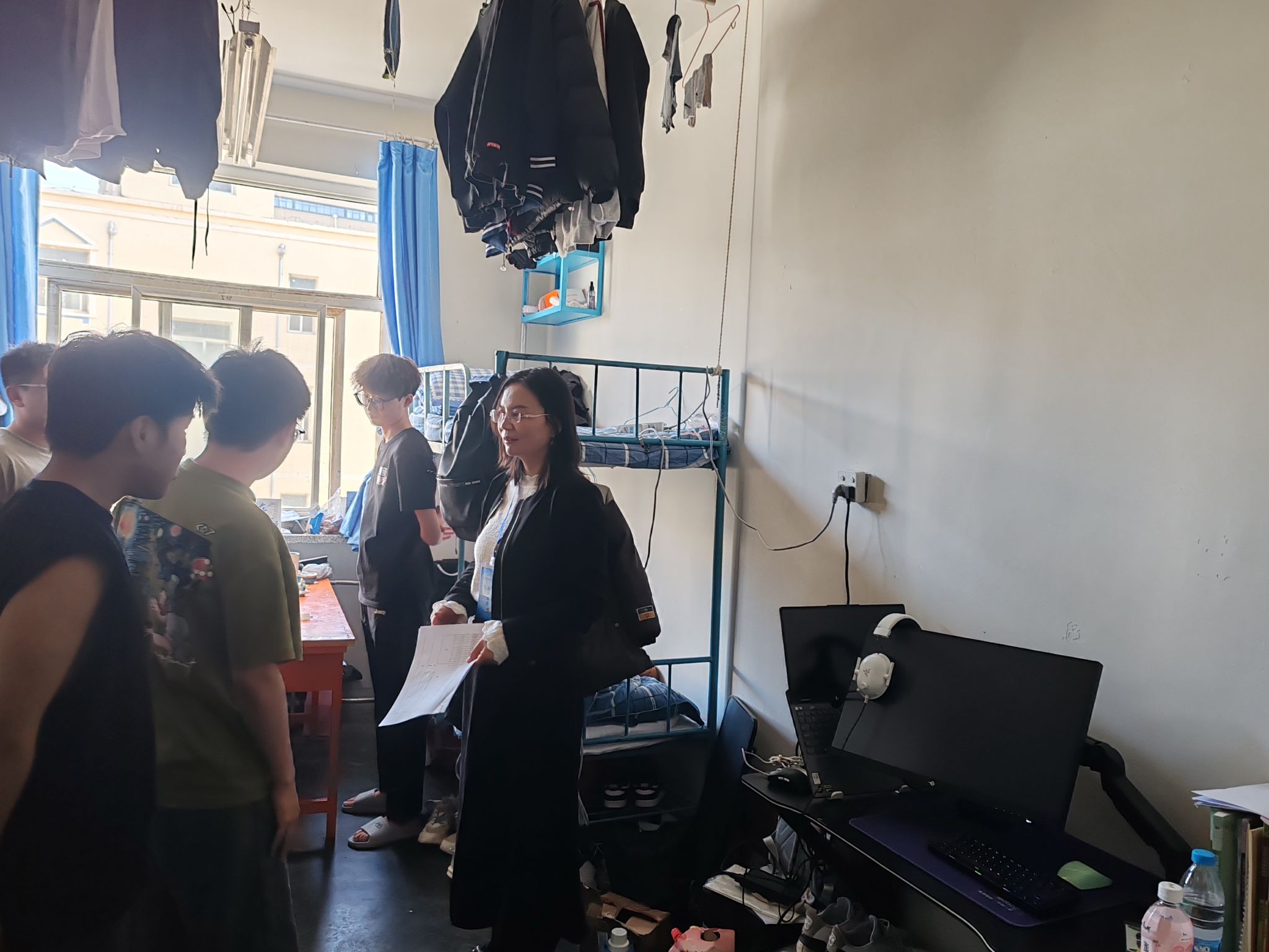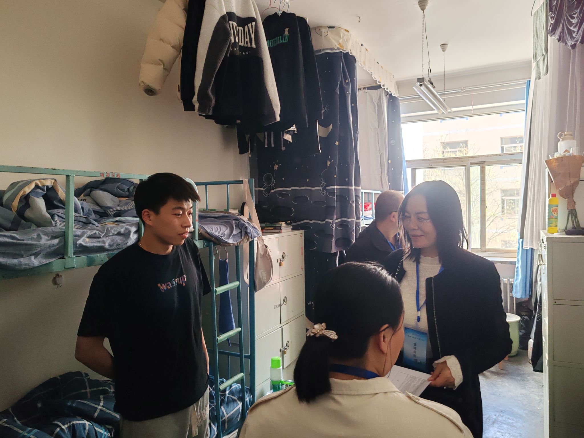 为深入贯彻《关于开展yl6809永利第十七届“文明月”活动的通知》文件精神,切实推进“平安校园”建设,4月22日下午,yl6809永利集团值周小组对南区学生宿舍进行走访。走访过程中,重点排查使用大功率电器、宿舍内网游、吸烟等问题。就宿舍卫生、垃圾清理等现象,值周小组提醒大家要提高安全和卫生意识,并对使用大功率电器、夜不归宿学生建立台账跟踪落实。 此次宿舍走访检查是学院加强学生宿舍安全的重要举措,学院将继续深化走访活动,排查整治安全隐患,强化学生安全教育与文明行为养成,共建安全、文明、健康、和谐的宿舍环境。